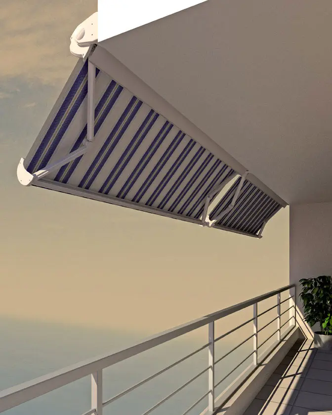 Ideali per balconi e terrazzi, permettono una copertura ampia senza ingombri a terra.